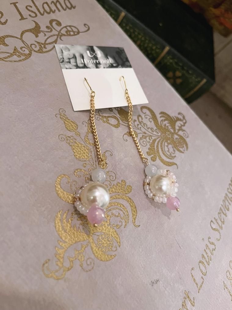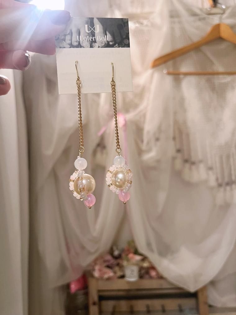 Water Ball ハンドメイド パールビーズロングイヤリング