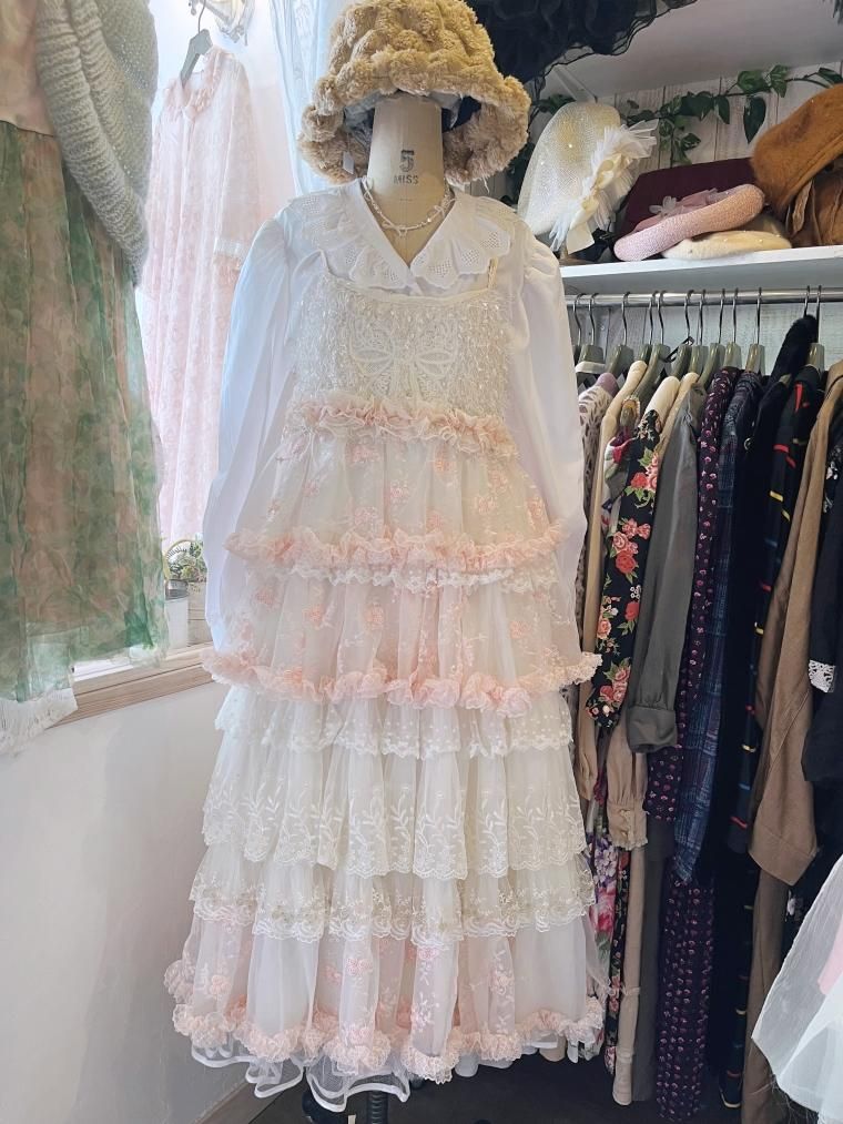 ダブルレースカラーロマンチックホワイトチロルブラウス