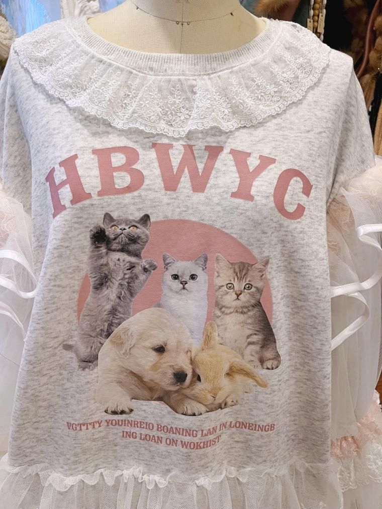 子猫と子犬のプリントがキュートなビッグシルエットのスウェットです。