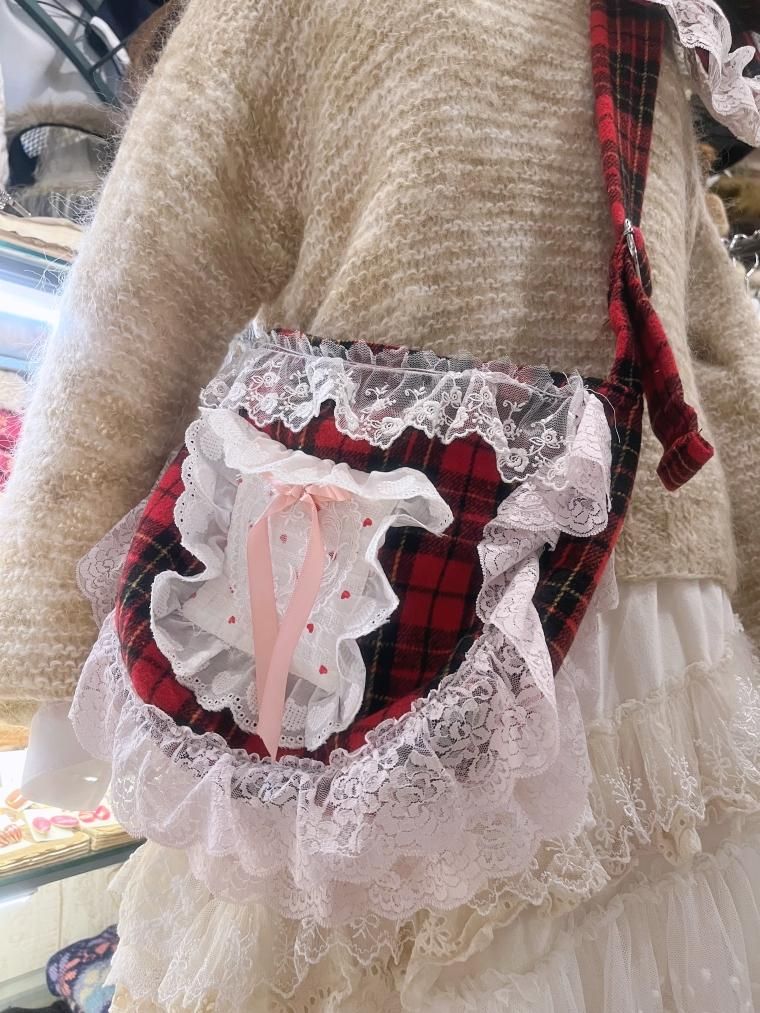 dentelle remake ビッグリボンチェック柄ショルダーバッグ d-170