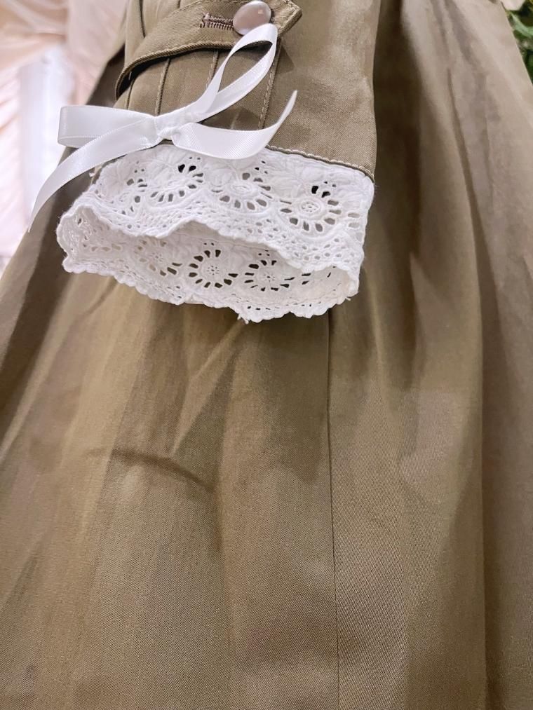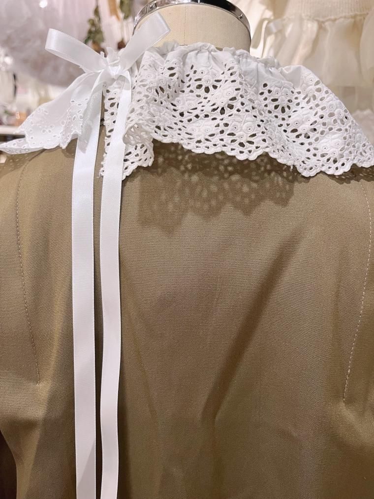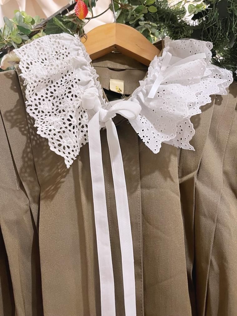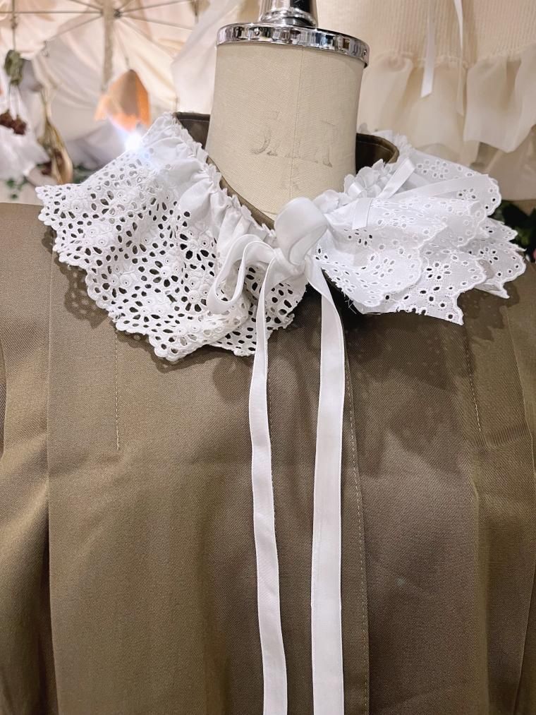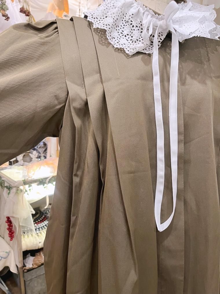 襟元と袖口にはアンティークコットンレースが装飾されています。