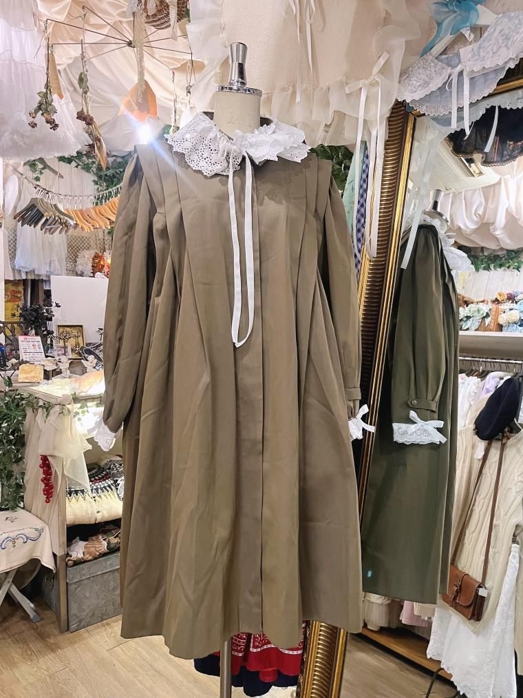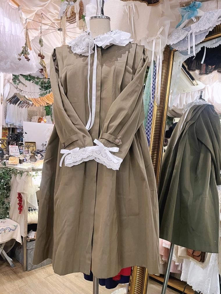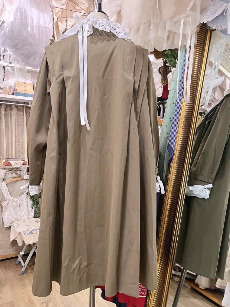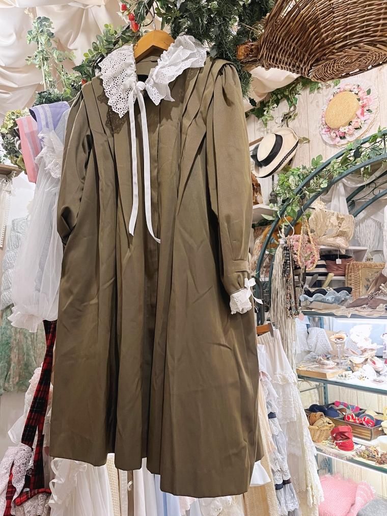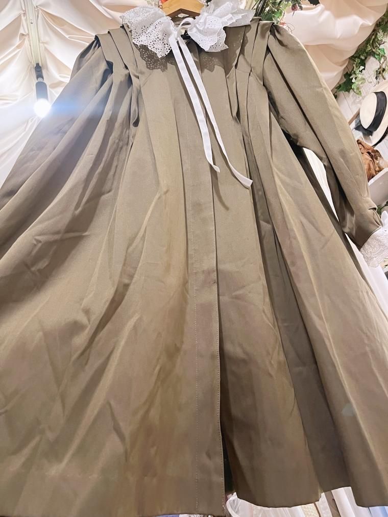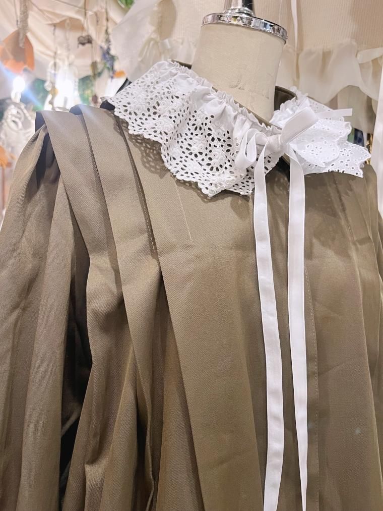 襟元と袖口にはアンティークコットンレースが装飾されています。
