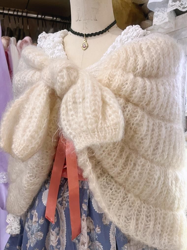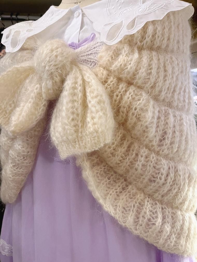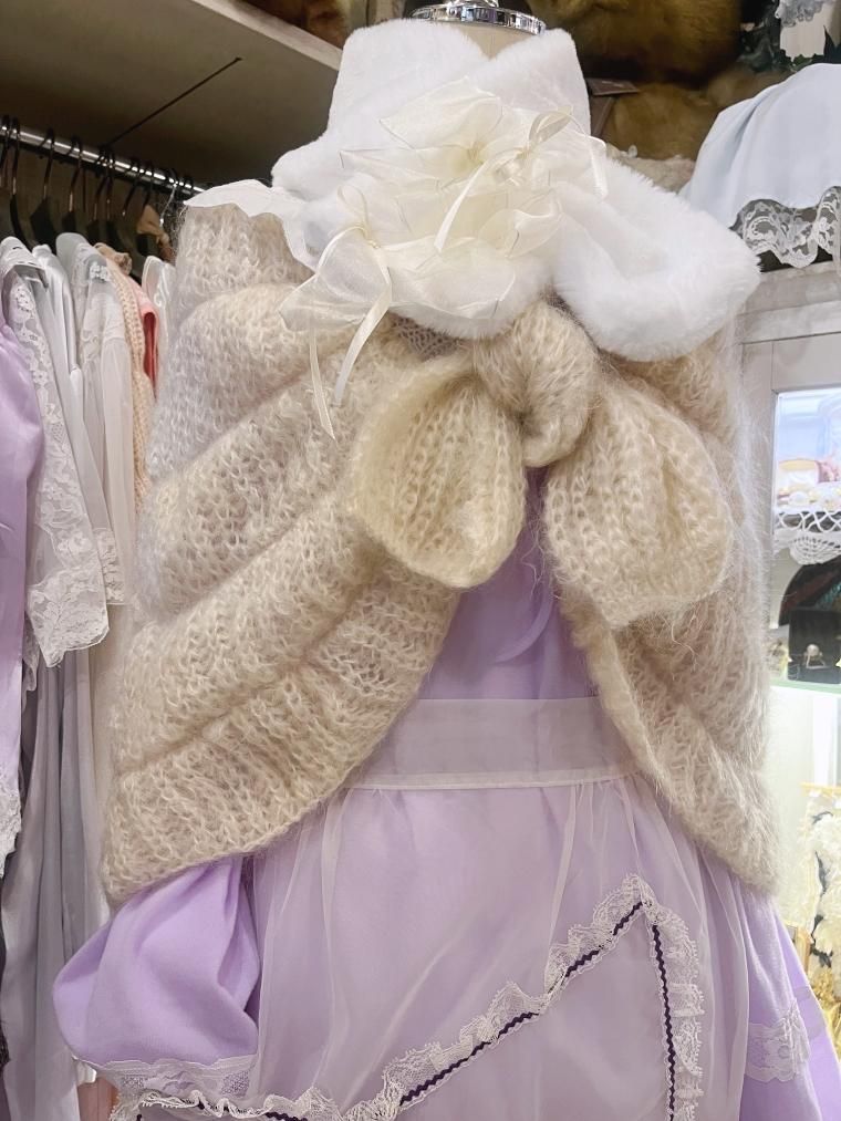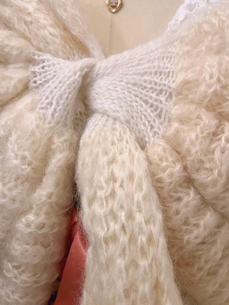 ハンドメイドかぎ編みモヘアニットケープ 25849