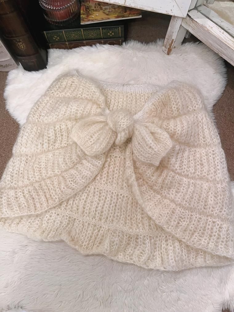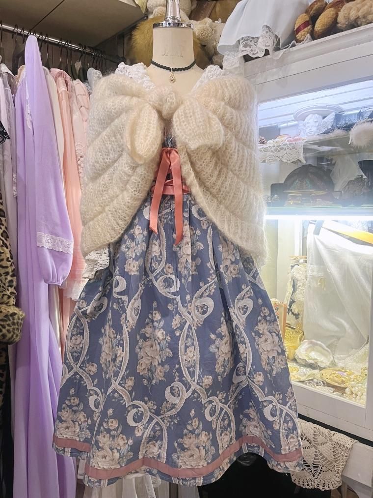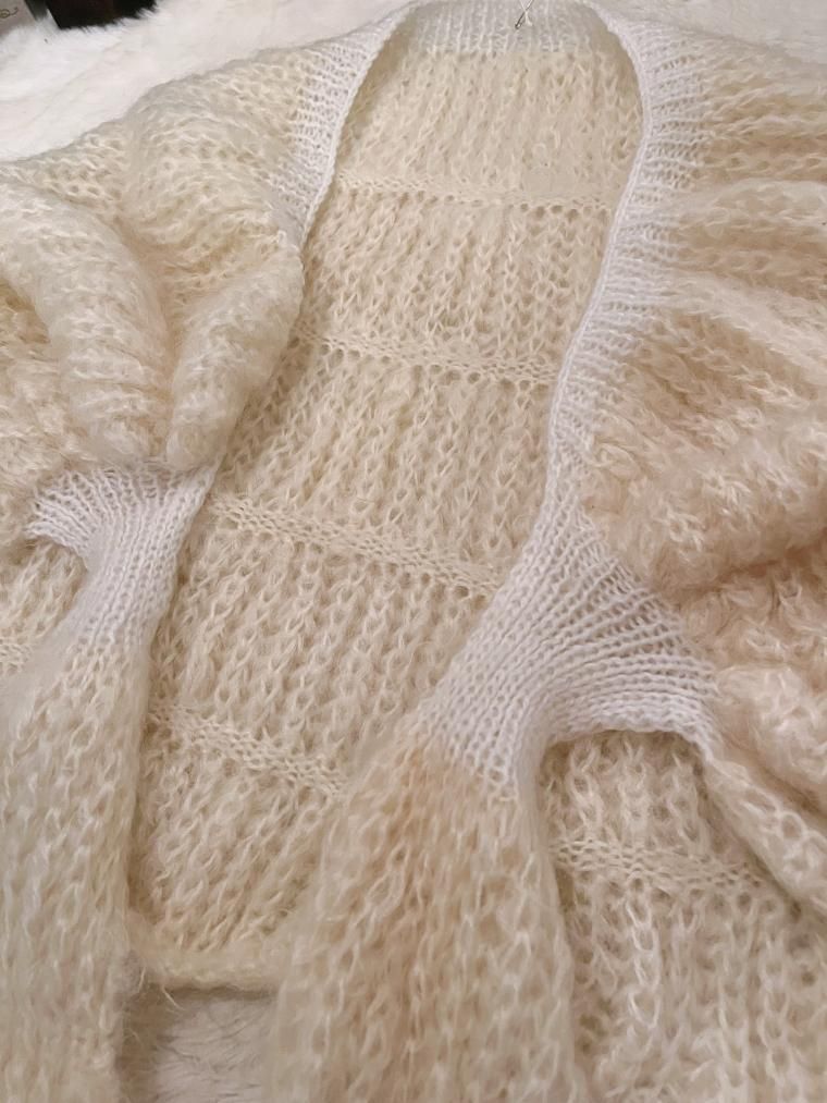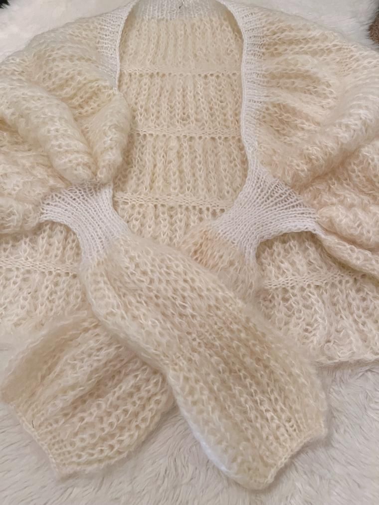 ハンドメイドかぎ編みモヘアニットケープ 25849