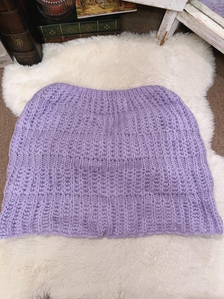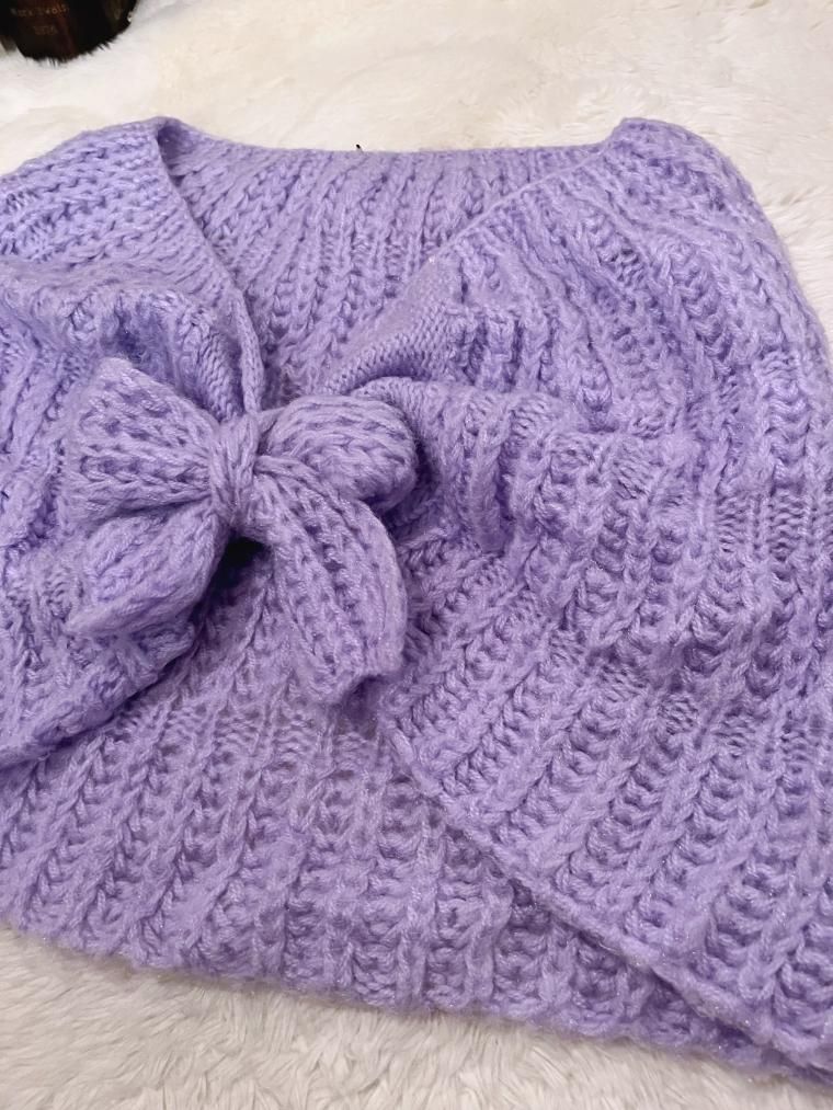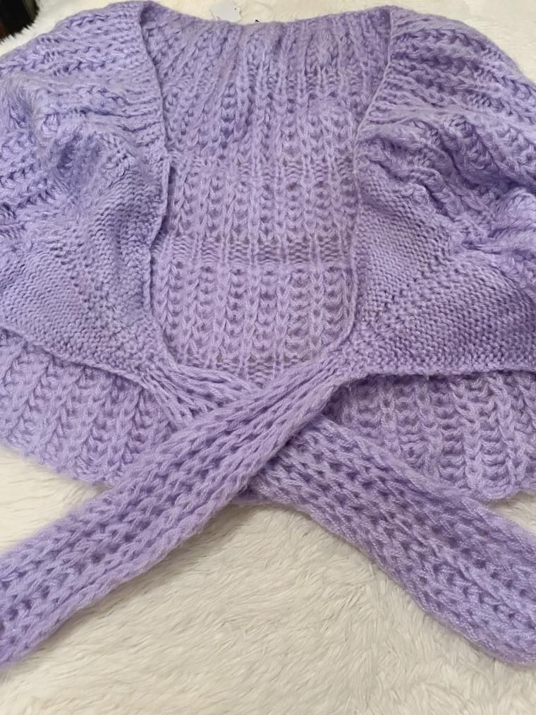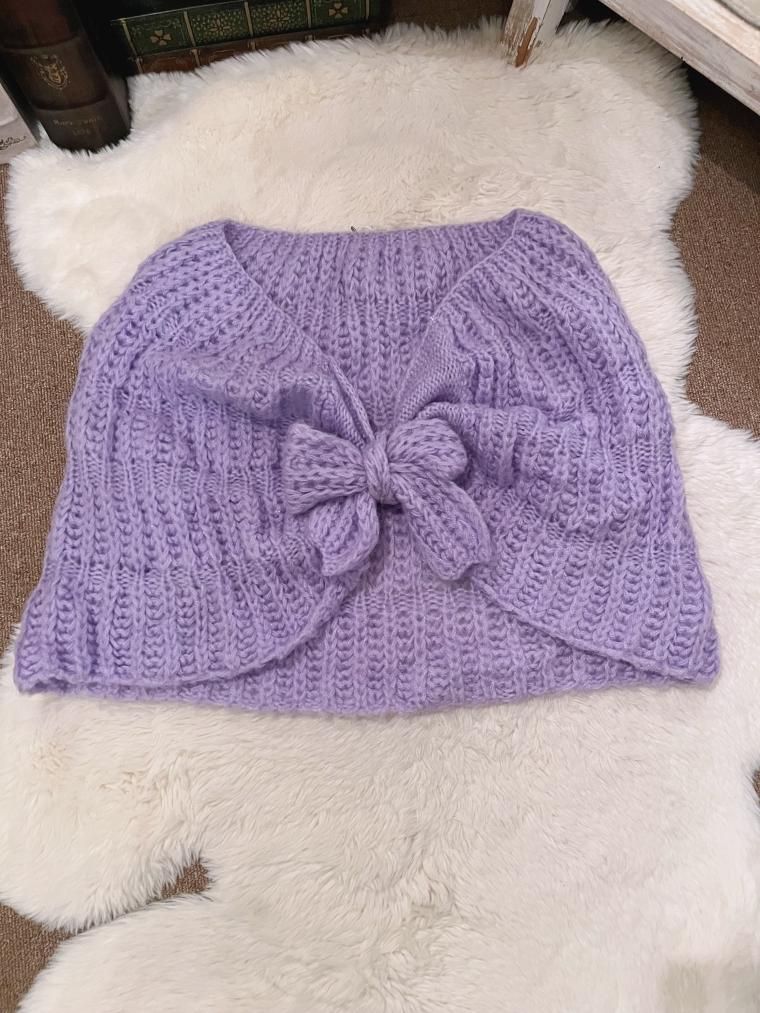 ハンドメイドかぎ編みモヘアニットケープ パープル 25850