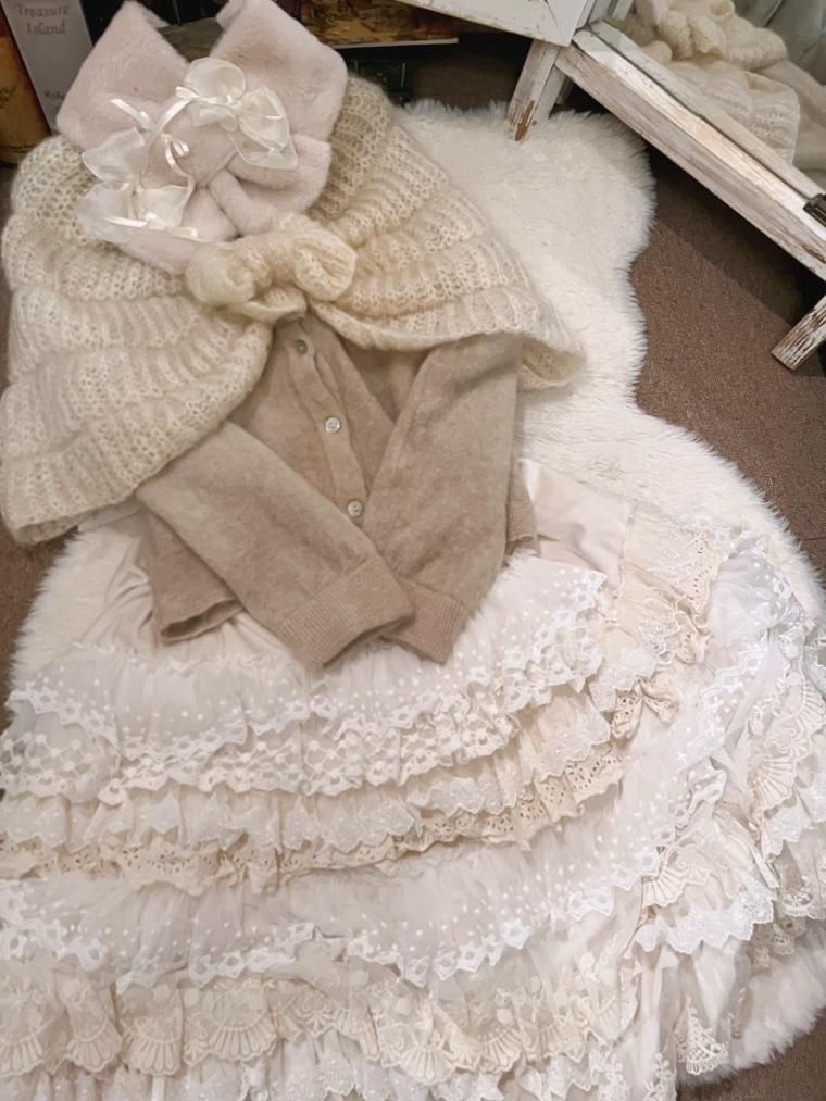 ハンドメイドかぎ編みモヘアニットケープ