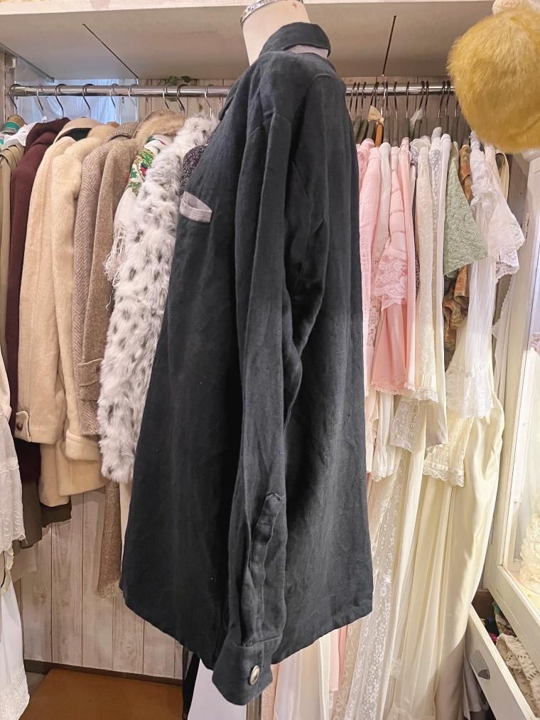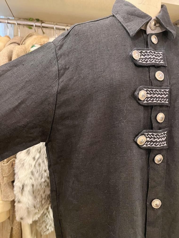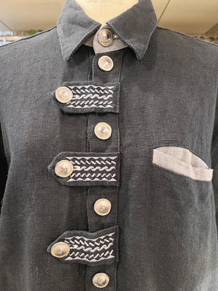 Austria チロルリネンドロップショルダーオーバーシャツ ブラック 25768