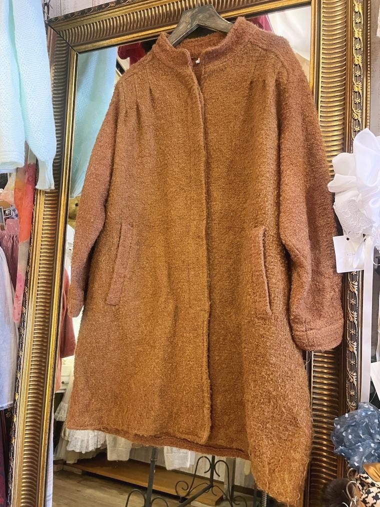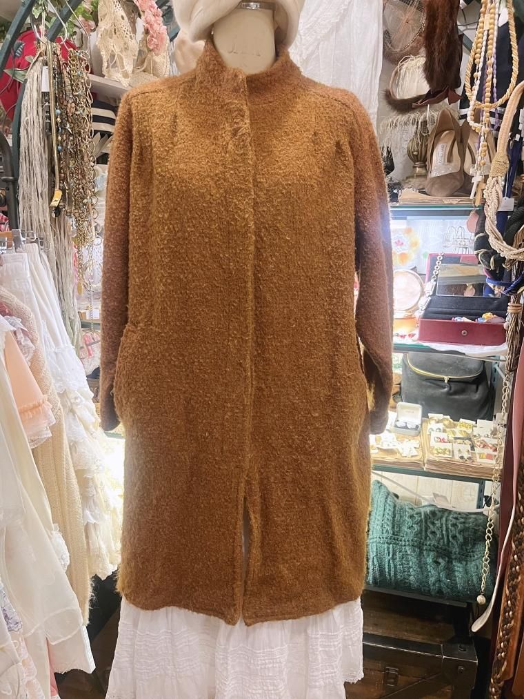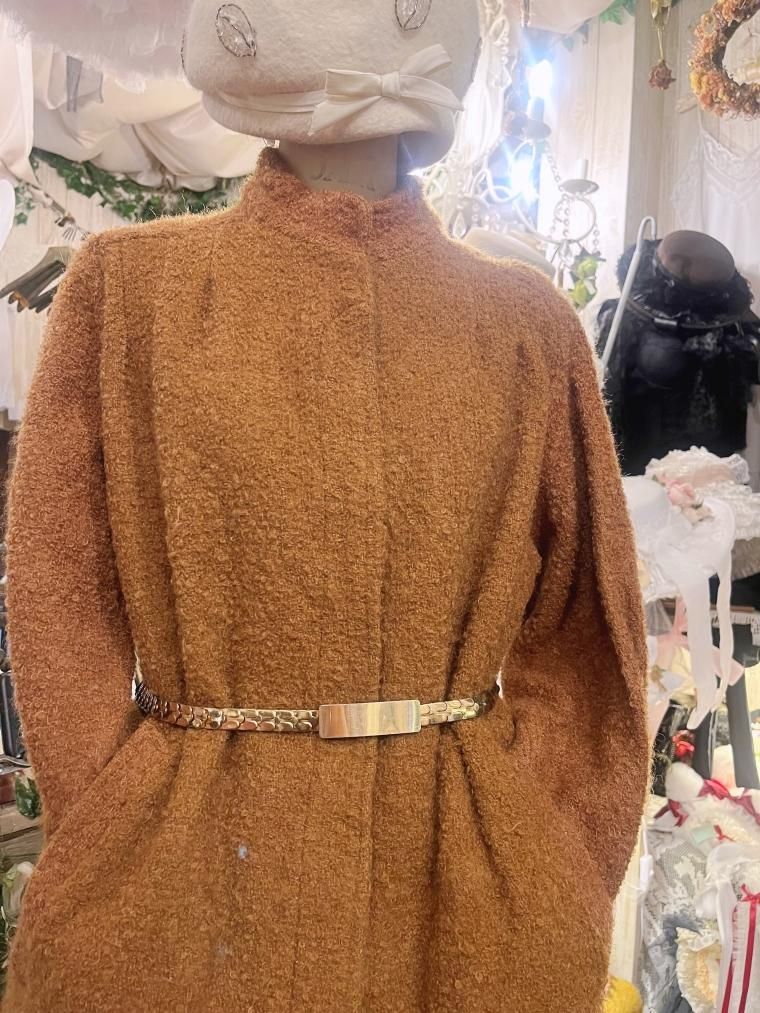 Vintage Itary スタンドカラーウールミディ丈コート キャメルブラウン 25822