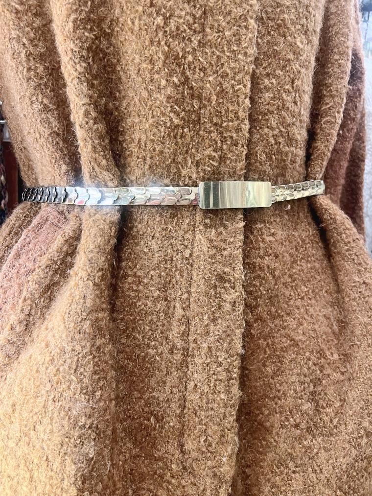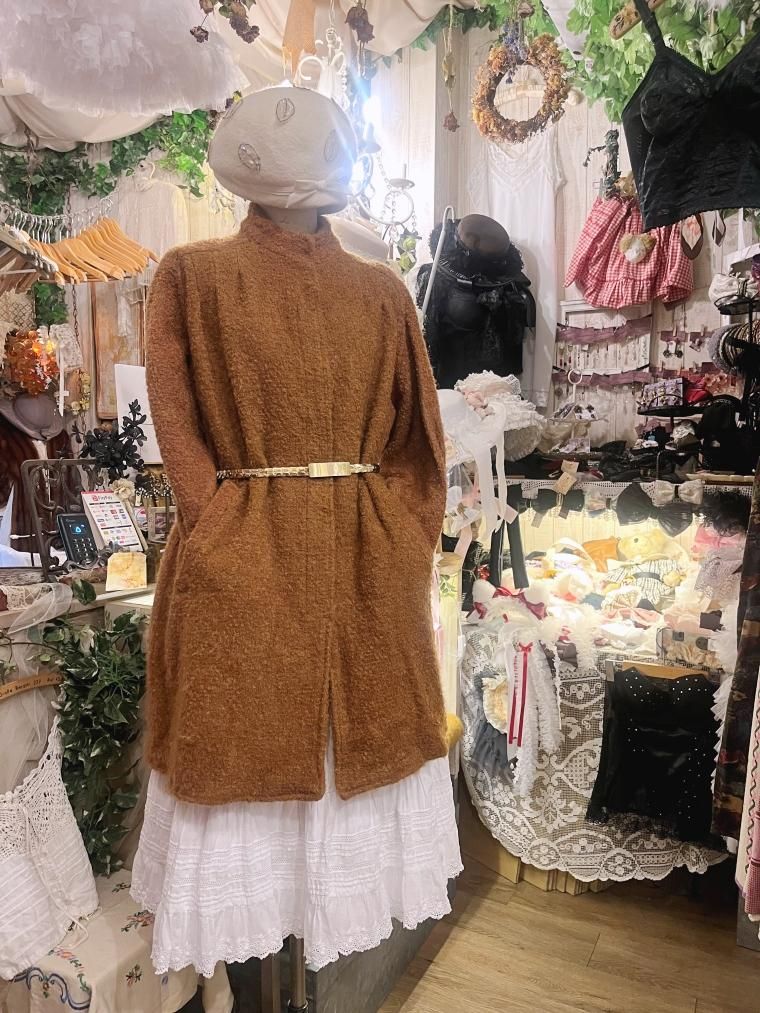 Vintage Itary スタンドカラーウールミディ丈コート キャメルブラウン