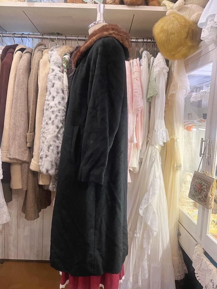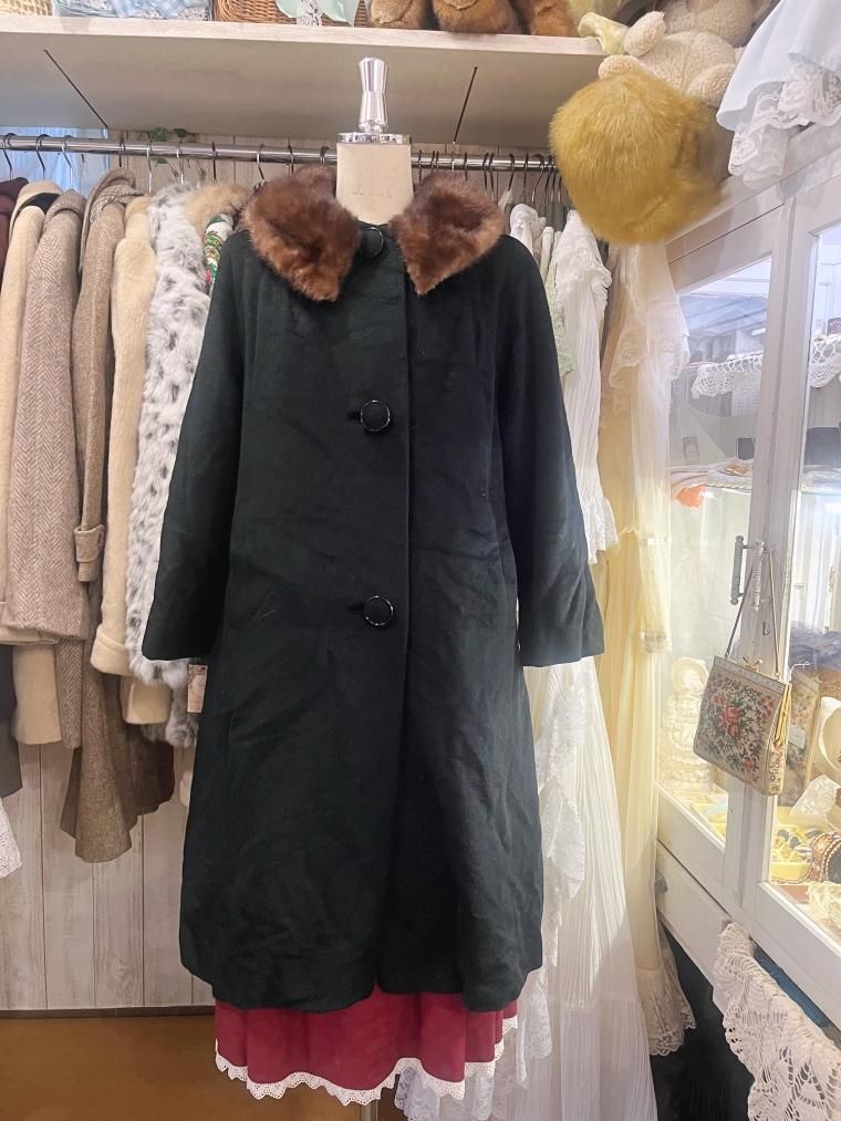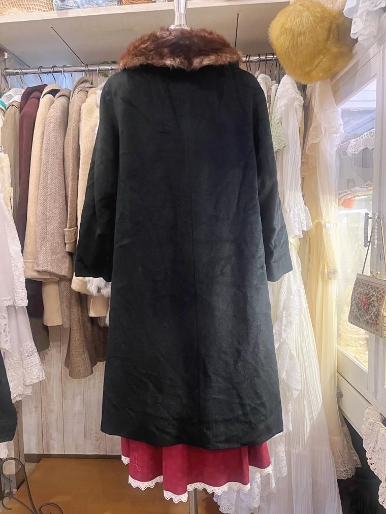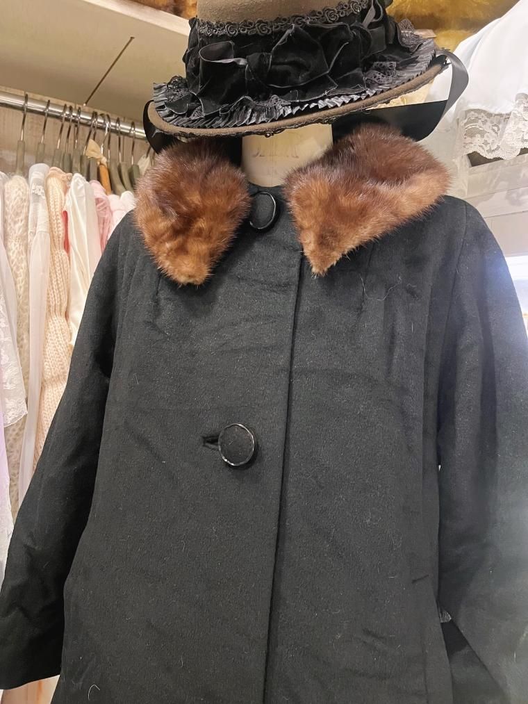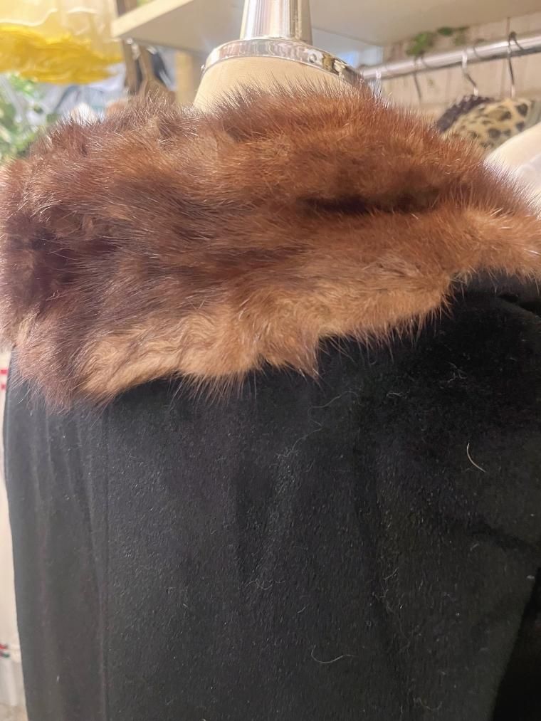 50s ミンクファーカラーウールコート ブラック