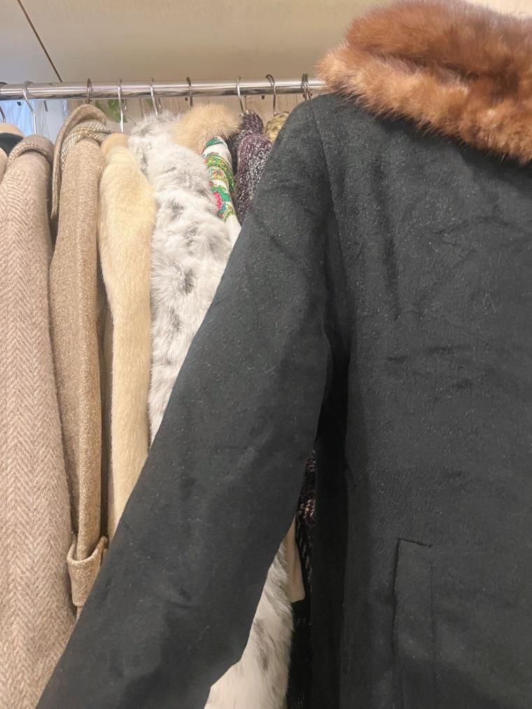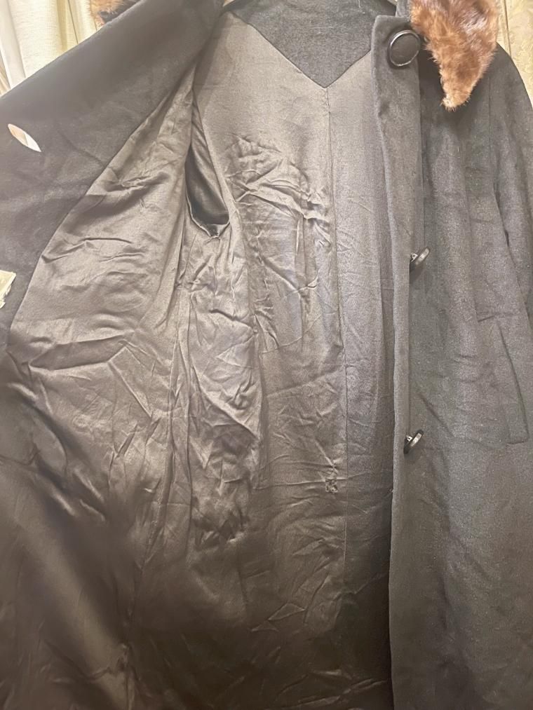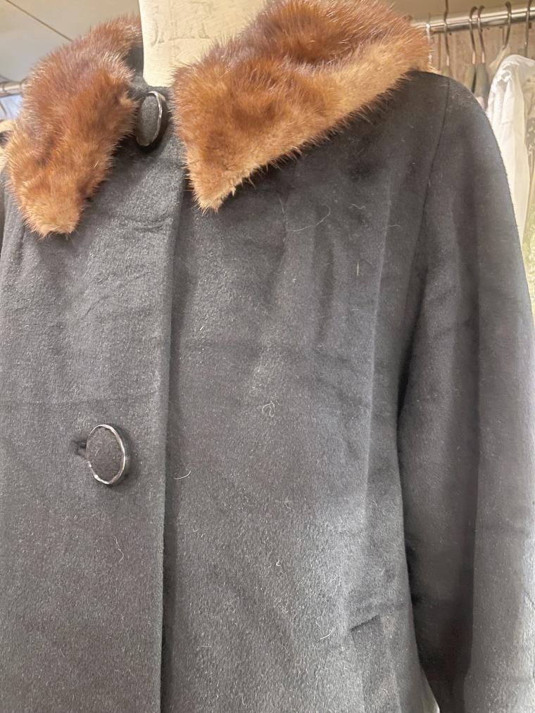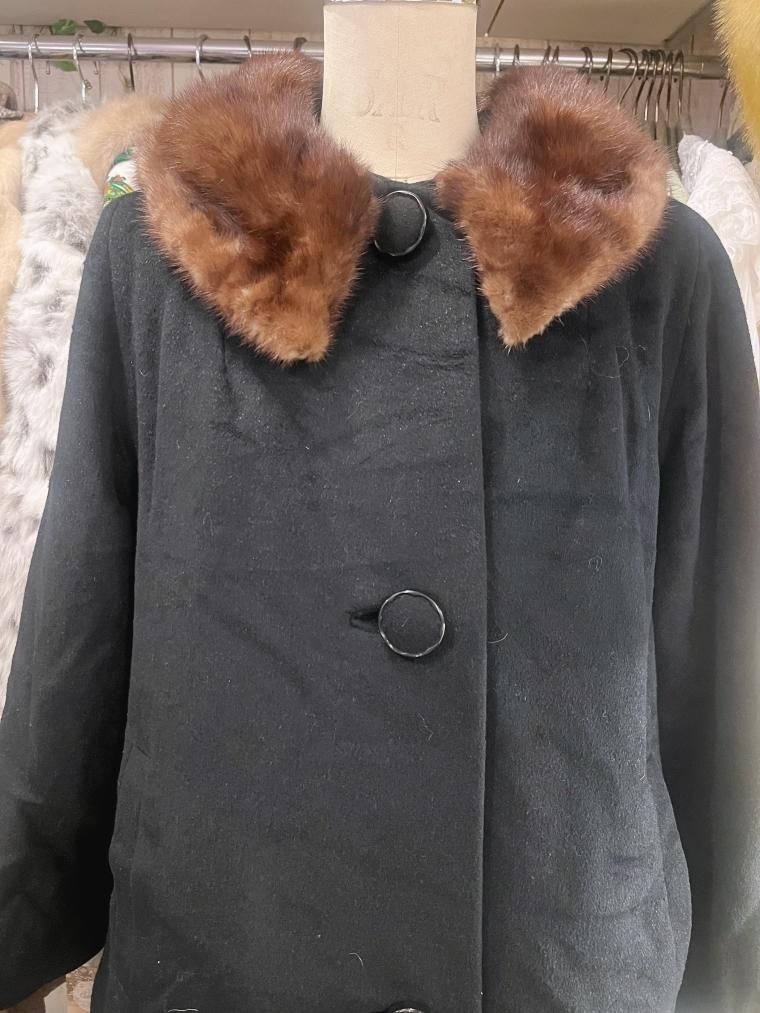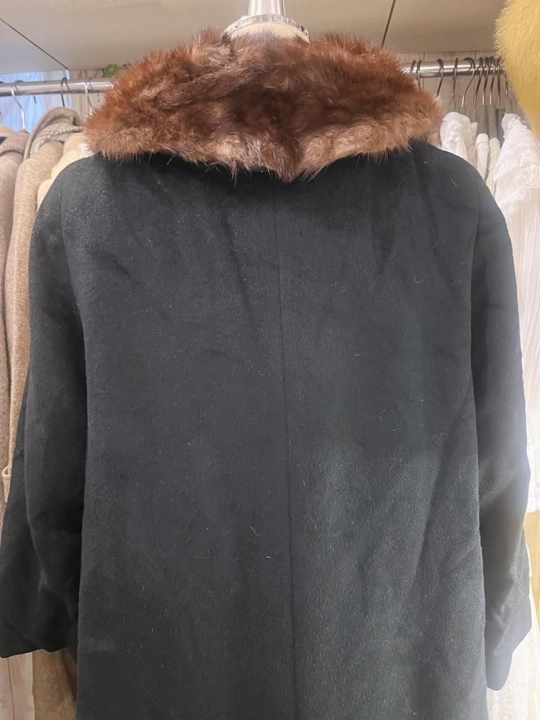 50s ミンクファーカラーウールコート ブラック