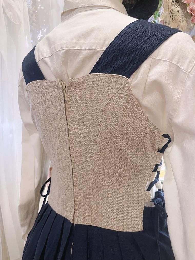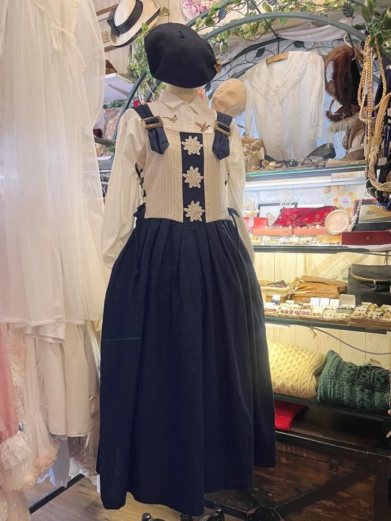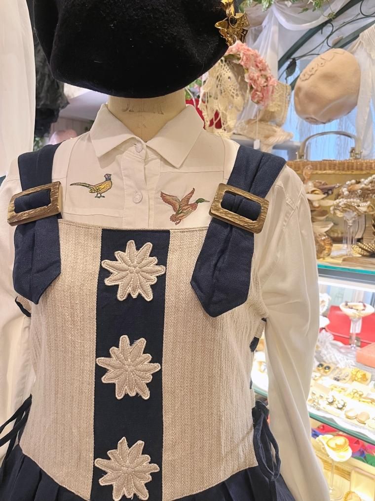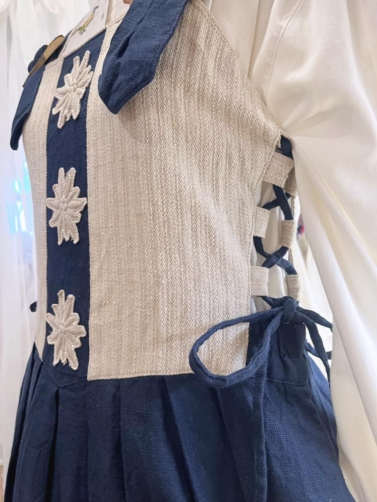 エーデルワイスモチーフバイカラーリネンジャンパースカート