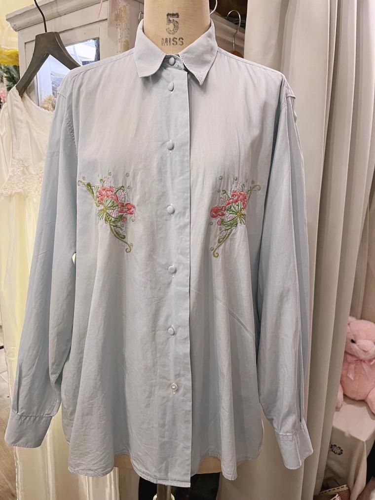 ダブルレースカラーロマンチックホワイトリネンチロルブラウス