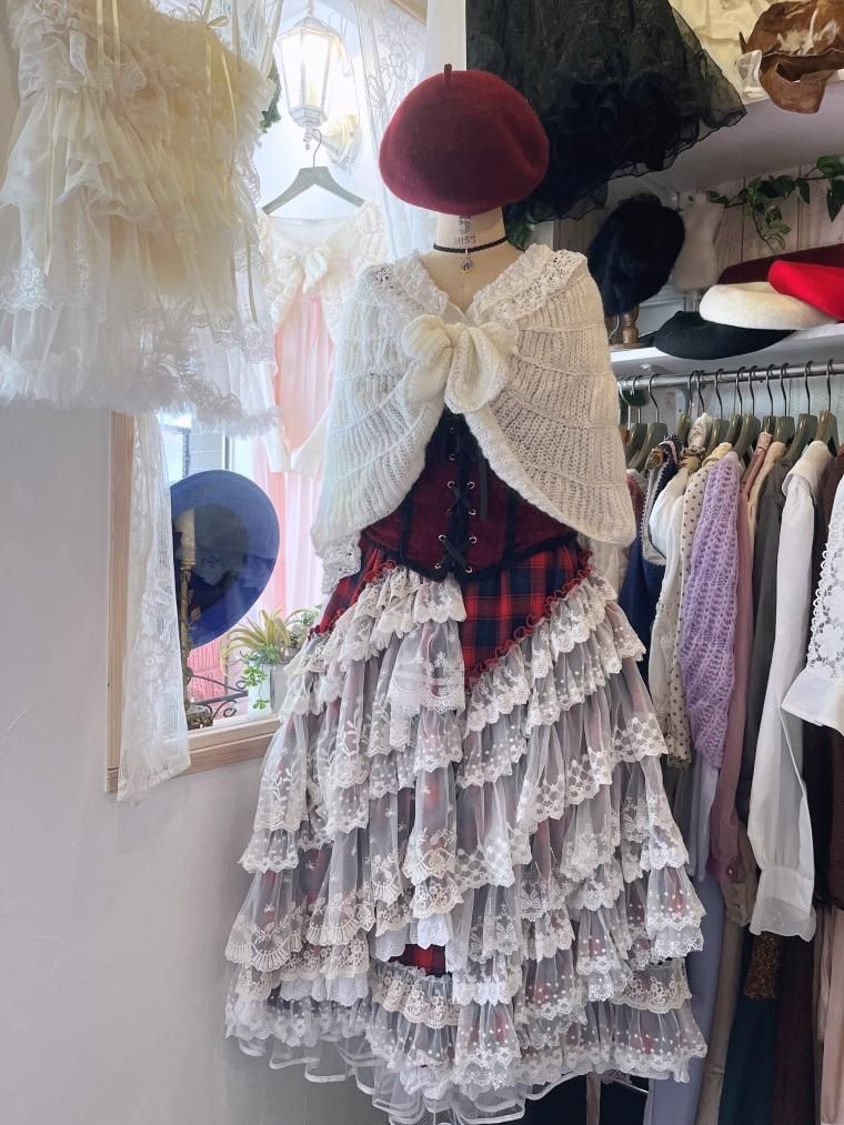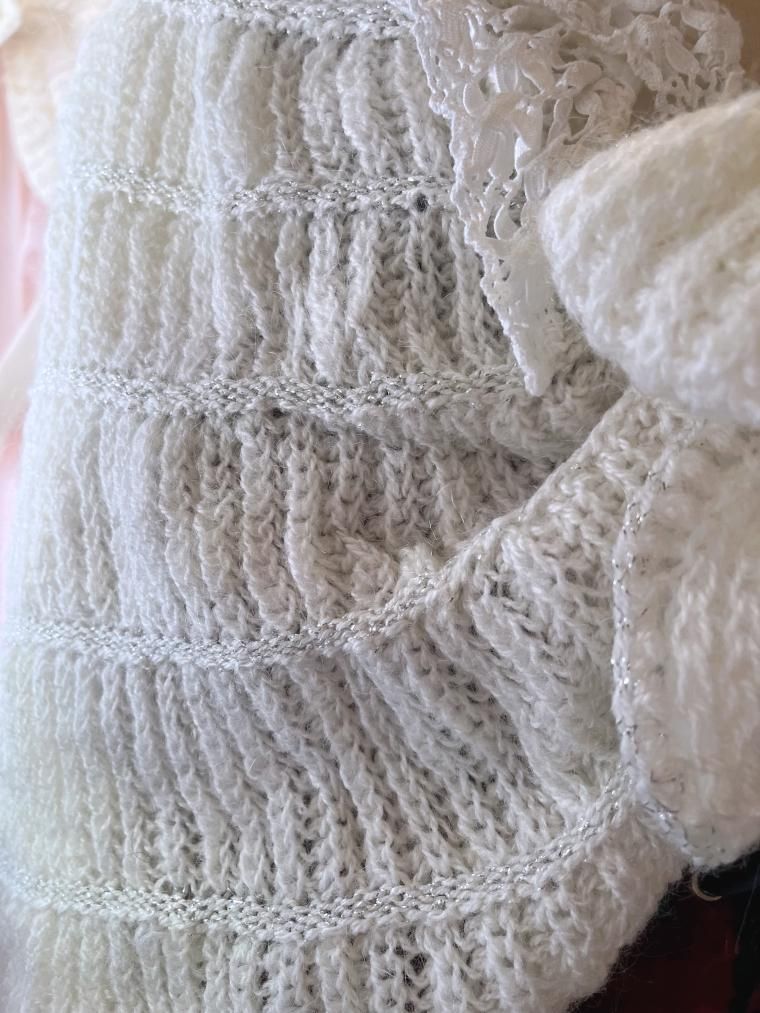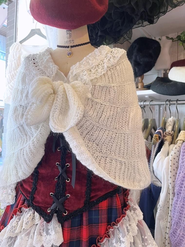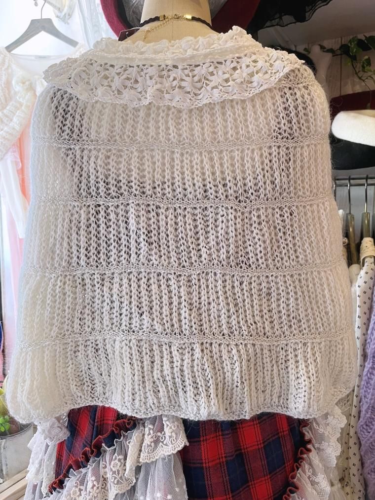 ハンドメイドかぎ編みモヘアラメニットケープ ホワイト
