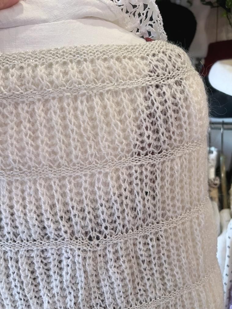ハンドメイドかぎ編みモヘアラメニットケープ ホワイト 25853
