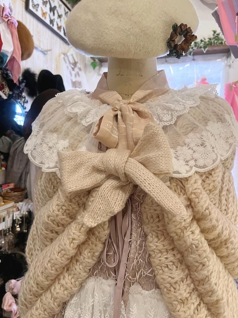 ハンドメイドかぎ編みモヘアニットケープ ベージュ