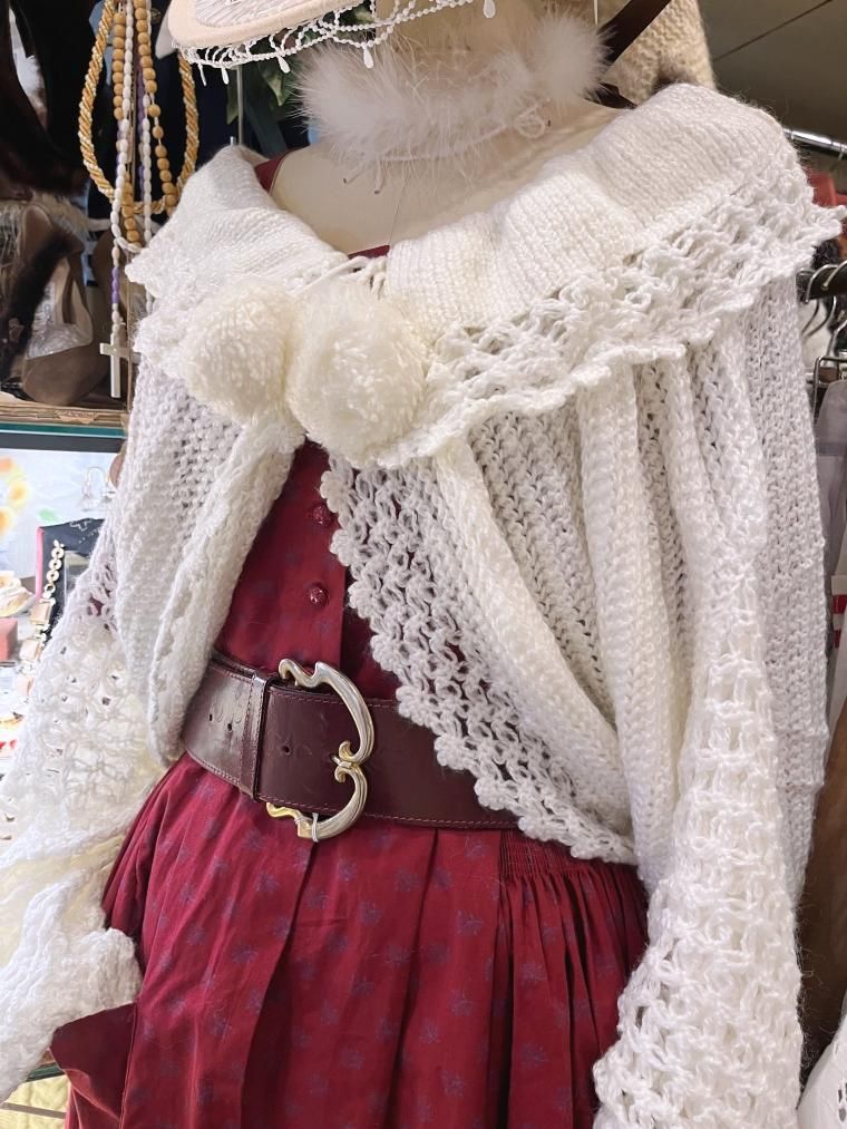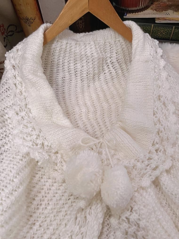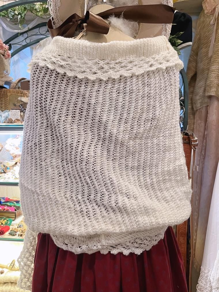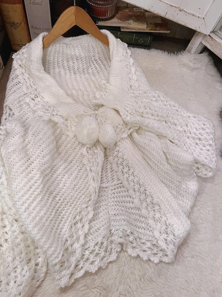 ハンドメイドかぎ編みモヘアニットケープ オフホワイト
