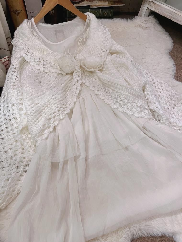 モヘアかぎ編みホワイトニットカーディガン