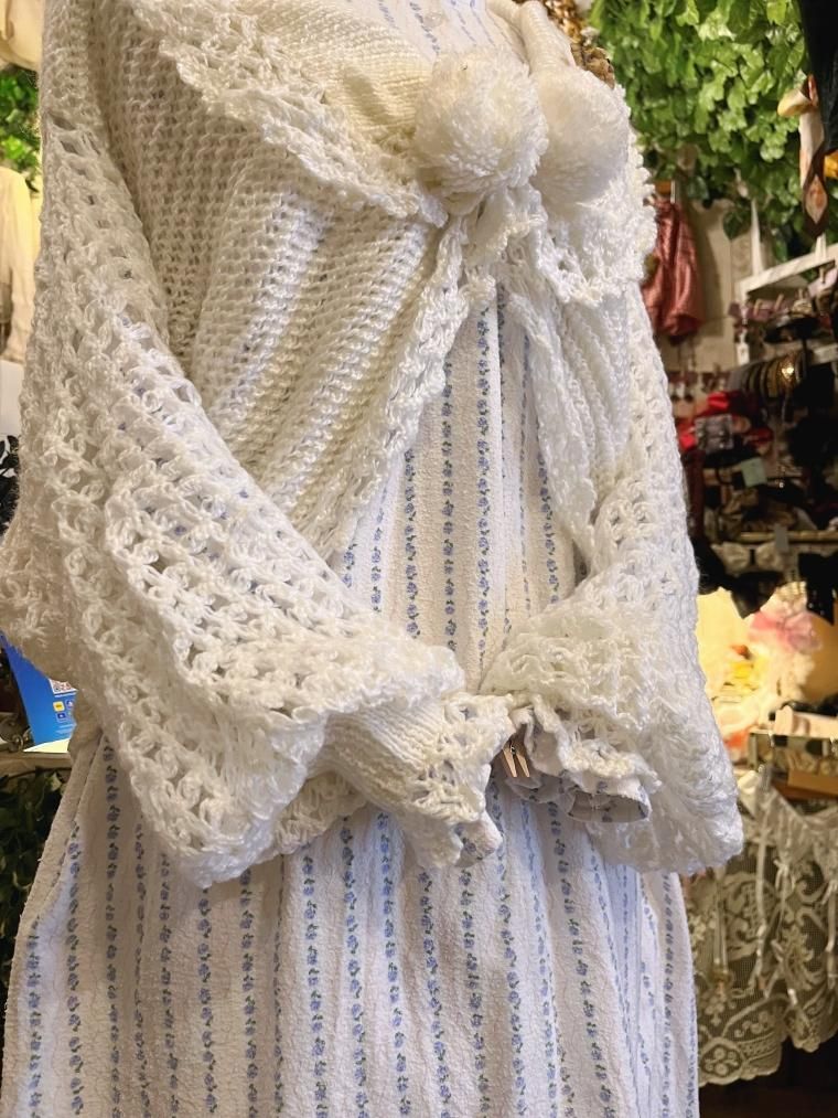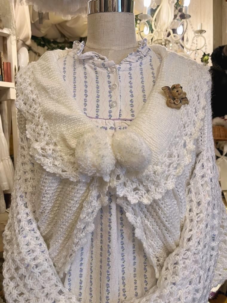 ハンドメイドかぎ編みモヘアラメニットケープ ホワイト