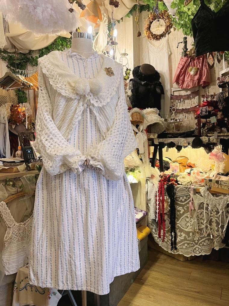 vintage nightie 60s リボンレースロマンチックロングガウン オフホワイト