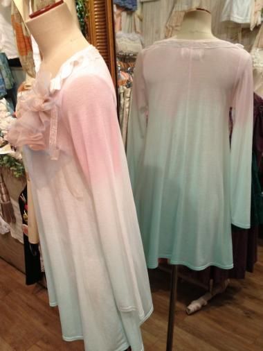Comyu handmade... ブルー&ピンク Tシャツワンピース comyu0135