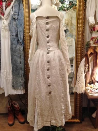 Used euro リネン素材オフショルダーチロルロングワンピースドレス tdd142101