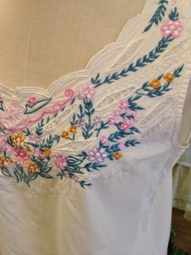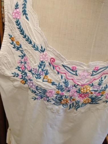 Vintage Nightie 刺繍入りシアーミディアム丈ワンピース