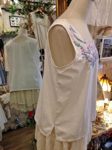 Used euro 胸元刺しゅうコットンノースリーブトップス rd144242