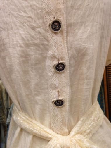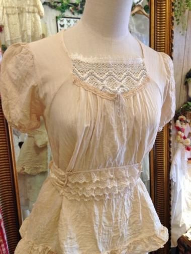 Comyu handmade... アンティークレースバックボタンサマーブラウス co0308