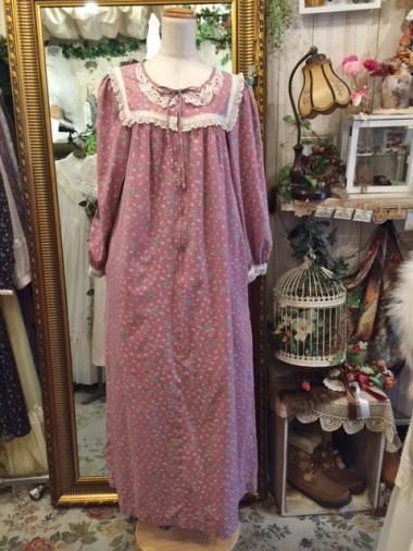アメリカヴィンテージ スクエアヨーク小花柄長袖ワンピース くすみピンク dm511183