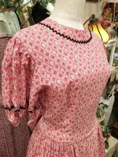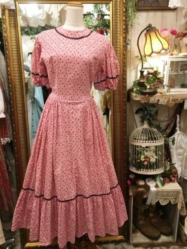 アメリカビンテージ 40’s サーキュラーパフスリワンピースドレス rd51257