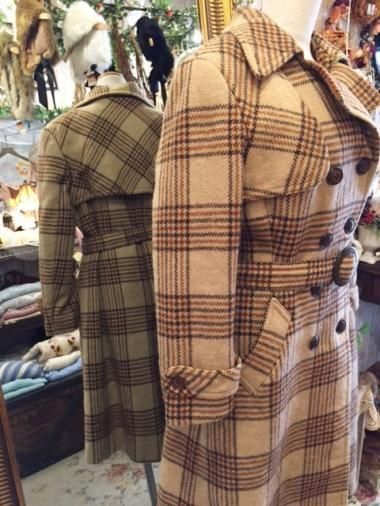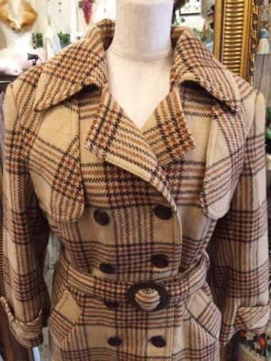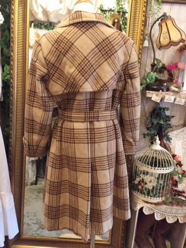 ヨーロッパビンテージのベルト付きチェック柄トレンチコートになります。