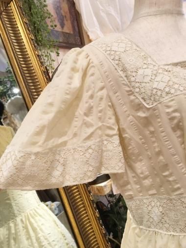 ヨーロッパ輸入ヴィンテージ 40’s スクエアネックティアードワンピース 生成り and61112