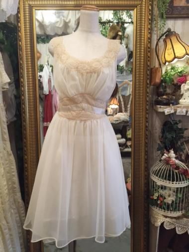 Vintage Nightie 刺繍入りシアーミディアム丈ワンピース