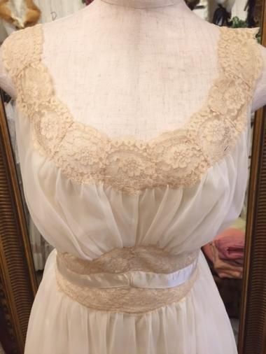 vintage nightie 60s リボンレースロマンチックロングガウン オフホワイト
